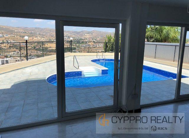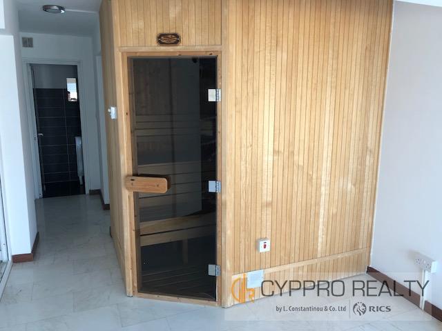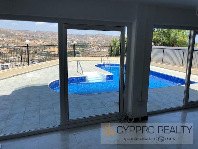 Built in 1996 and with full title deeds, it covers about 230 sq.m. internal area, has 4 bed rooms, 3.5 bath rooms, a large living room with open kitchen, a movie room and a sauna.