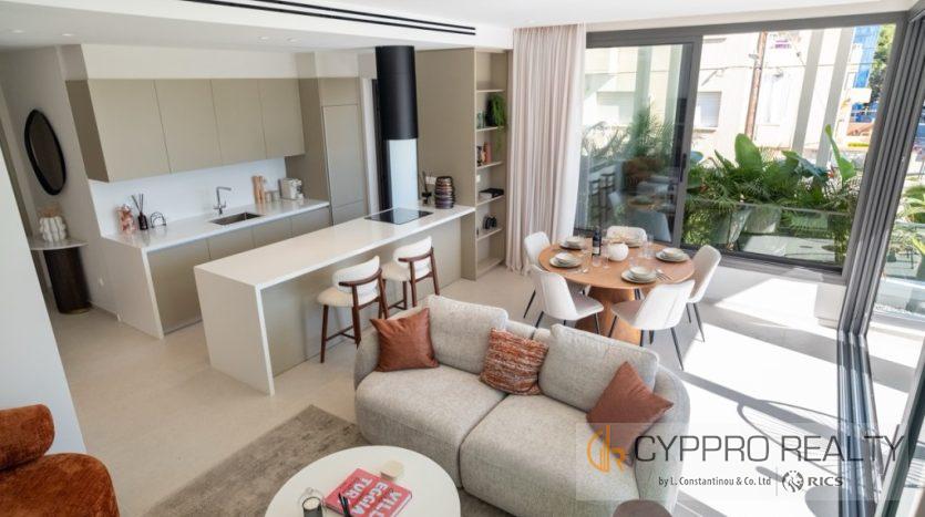 Apartment for sale in Agios Nicolaos, Limassol. The apartment has an air conditioning system, insulated aluminum doors, an entrance with video intercom and face recognition, and a water heater with Wi-Fi control. Automatic parking gates are installed. It is possible to charge electric vehicles for each apartment.