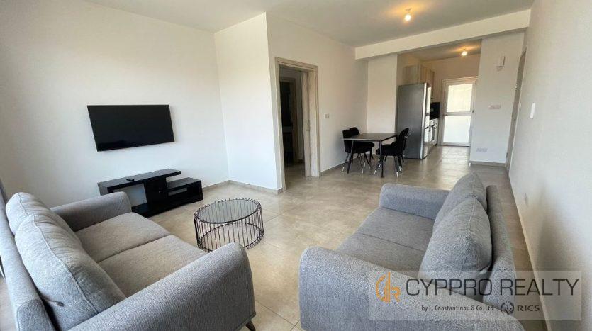2 bedroom apartment in Kato Polemidia, Limassol . The apartment is located within easy access to the highway and close to all the necessary amenities – supermarkets, shops, banks, pharmacies, etc. The apartment comes fully furnished, with modern decor, electrical appliances, air condition units throughout the property. There is a gated covered parking place and a storage room.