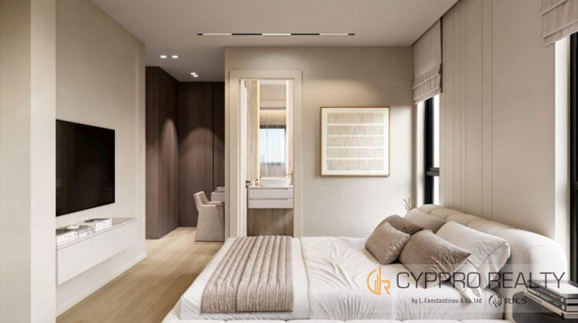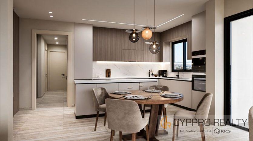 Apartment for sale in Germasogeia Columbia, Limassol. The apartment has a thoughtful open plan and modern design. A modern audio and video intercom system has been installed to ensure security and convenience. Central heating guarantees comfort at any time of the year.