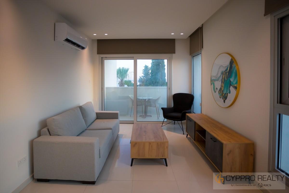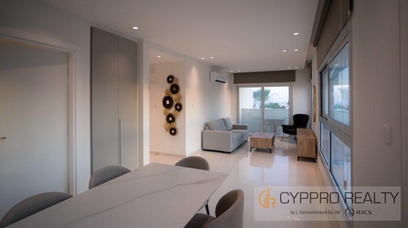 This 2-bedroom apartment is housed in a small new-build block of only four 2-bedroom units in Germasogeia, one of the most desirable locations in Limassol. The quiet residential neighbourhood is only 2km from the nearest organized sandy beach. All everyday amenities from banks and supermarkets to shops and restaurants are less than 1km from the property. In addition, easy access to the highway makes it an ideal base for commuters or regular travellers, as it is midway between the two airports in Larnaca and Pafos, both around 50km away.