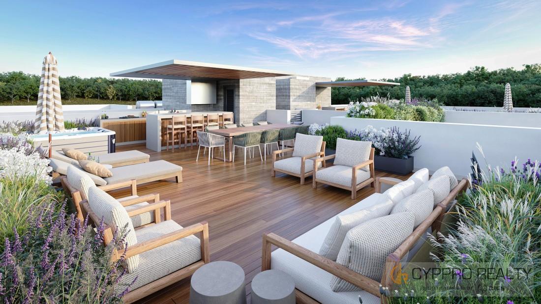 2 bedroom penthouse for sale in Geroskipou area. Each apartment will have 2 bathrooms, a large covered balcony, a ceiling height of 3.10 m, a storage room and a private parking space. The price includes air conditioners and a photovoltaic system for 2 kw. At the end of the street there is a beautiful park where you can relax and enjoy the panoramic sea view.