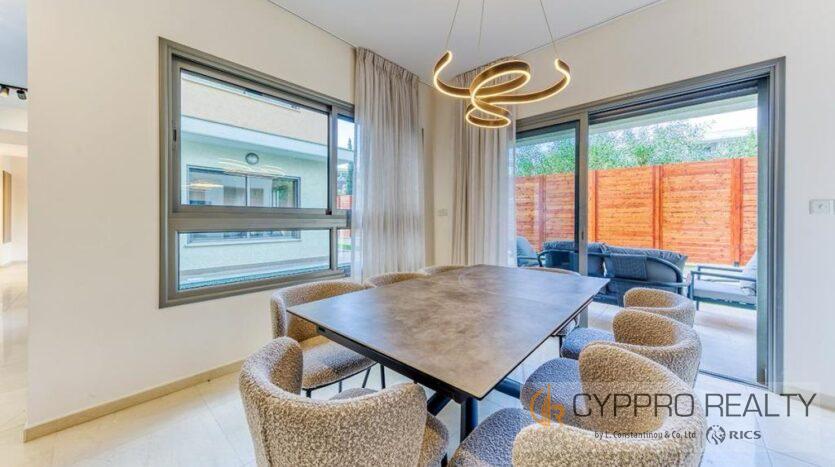 Spacious and stylish newly furnished and equipped villa has a large living room with an office space, separate kitchen with dining area for 8 people, a guest toilet, 3 bedrooms (master bedroom with en-suite and walk-in wardrobe room), a family bathroom shared by two bedrooms and a basement level with a wine cellar, toilet and spacious living room with big TV screen and folding sofa bed.