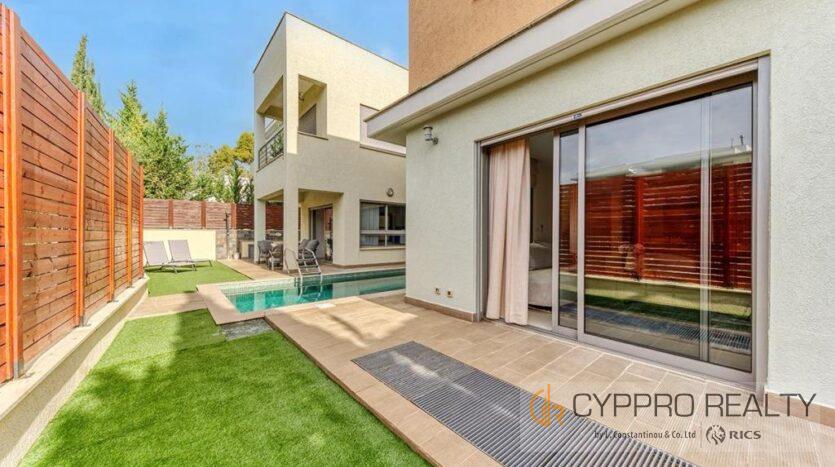 The size of the plot is around 300 sq.m. The terrace has a swimming pool, a barbeque area and a sitting and sunbathing area.