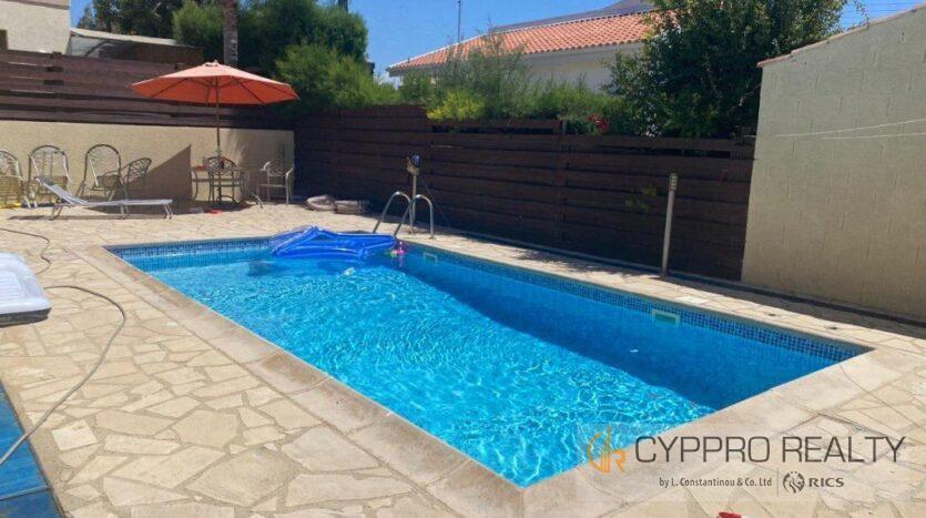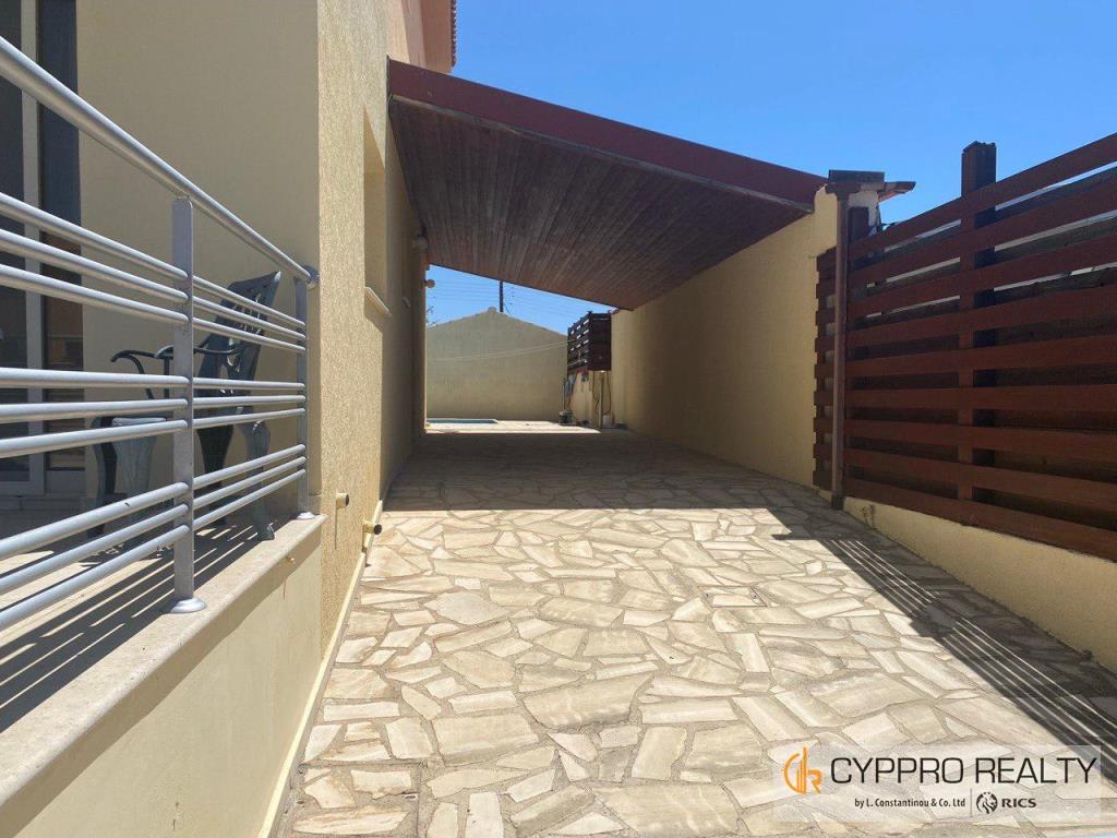 3 bedroom detached house for rent in Erimi. Land 380sqm covered 210sqm. Fully furnished, central heating, air-condition, swimming pool, covered parking for 3 cars. 3 bathrooms, 2 kitchens. Garden.