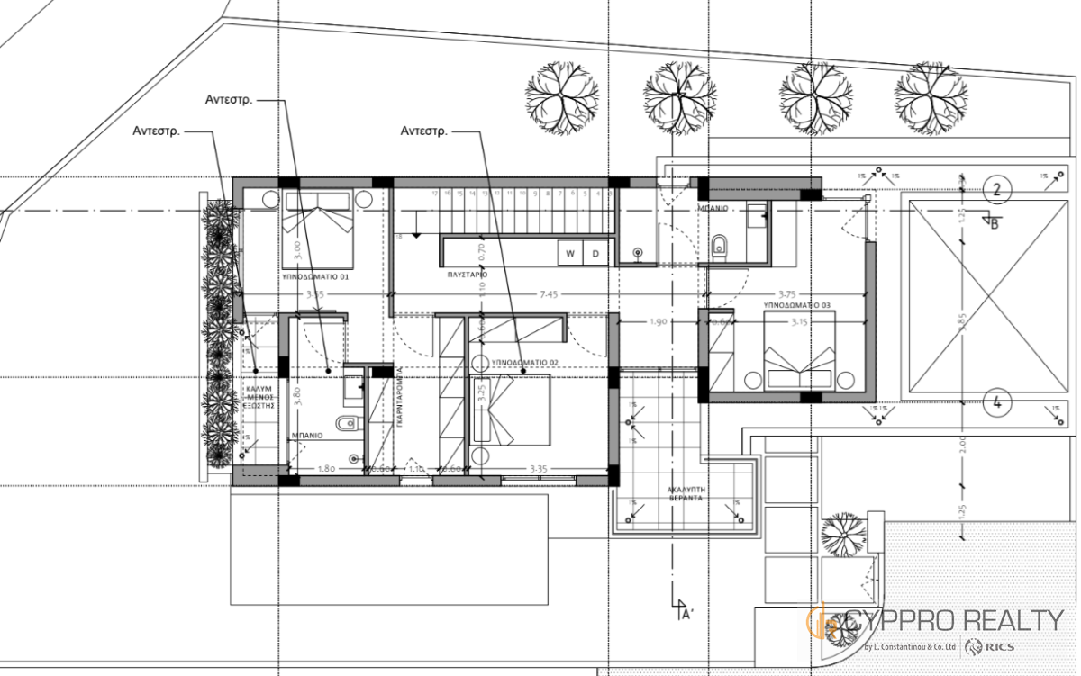 The building is divided in two floors. The ground floor is the main area of the house consisting of the social areas like the living room, dining room and kitchen. The main characteristic of the ground floor is the open plan area which creates very large, functional spaces.