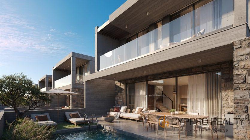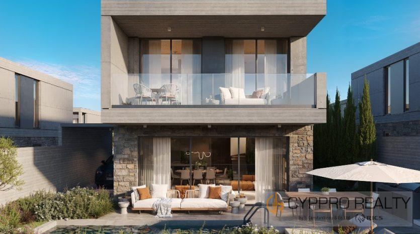 3-bedroom detached villas with private pools. A complex under construction in the Geroskipou area, Paphos. Each house will have a swimming pool, barbecue area, air conditioning (split system), modern plumbing, covered parking.