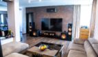 Семейная ванная, мастер спальня с ванной, гостиная и кухня открытого плана.