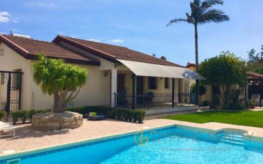 Luxury 4 bedroom bungalow built in 1,100 sq.m. of land with swimming pool surrounded by mature gardens and lawn, gas central heating, A/c, fully furnished and equipped to high standards.