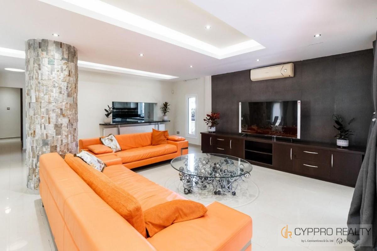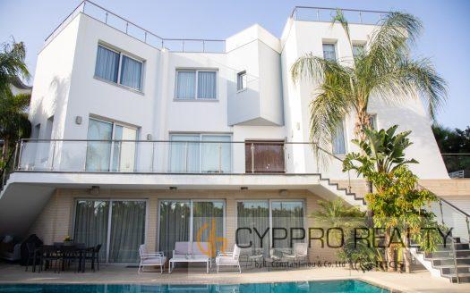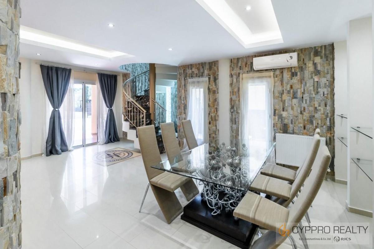 Luxury villa located in the prestigious area of Agios Tychonas, within walking distance from the beach. The villa consists of 2 levels, living and dining area, separate kitchen, guest toilet and 2 en-suite bedrooms on the ground floor. On the second floor there are 2 more bedrooms with a shared bathroom with a jacuzzi, as well as a large second kitchen that can be converted into a living room and a fully covered and glazed veranda. Villa after major renovation, 4 bedrooms, 4 bathrooms, total area 379 sq.m., plot area 1.115 sq.m., 2 floors, windows overlooking the sea, mountains, pool, barbecue area, new appliances, new furniture, air conditioners, alarm system, diesel heating, 800 meters from the sea. Internet Faber Optic. On the territory there is a separate small house for staff and parking for 3-4 cars.