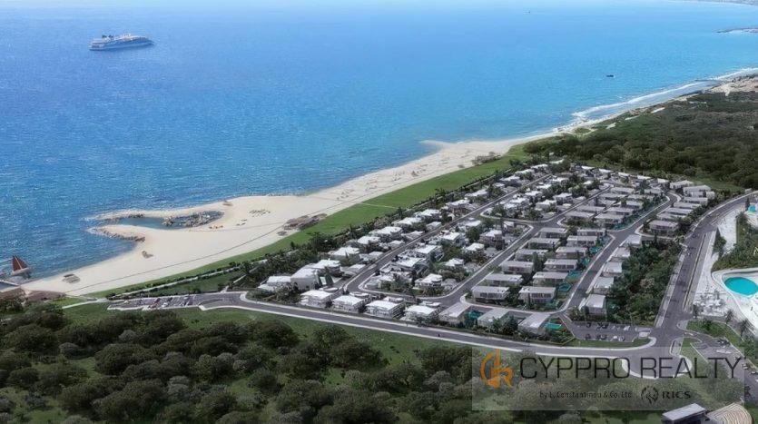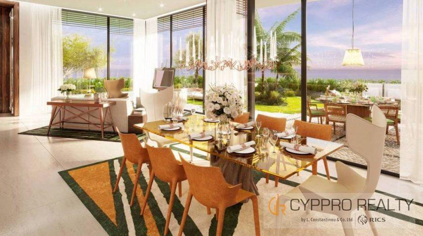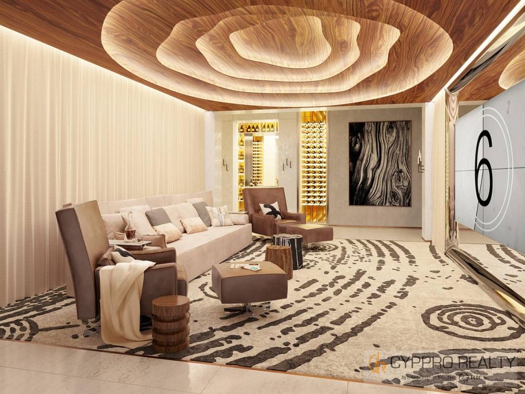 For sale a luxury villa with a swimming pool, located right on the seashore in a gated complex in the Pyrgos area, Limassol. On the territory of the residential complex there are also gyms, a botanical park, a tennis court, a chapel, a center for water sports at sea, an amphitheater. The total area of the complex is 119,000 m2, of which 45,000 m2 is allocated for a green zone. High standards of construction and interior decoration. Underfloor heating and VRV air conditioning.