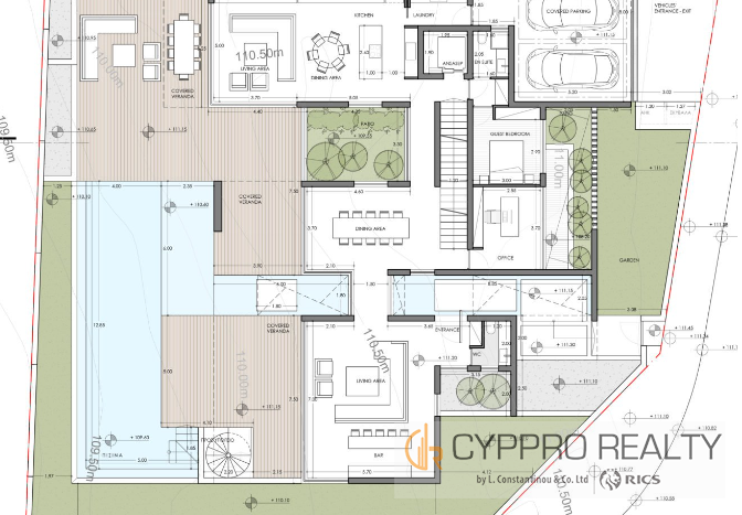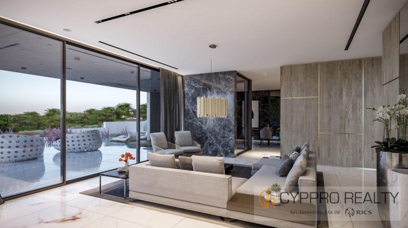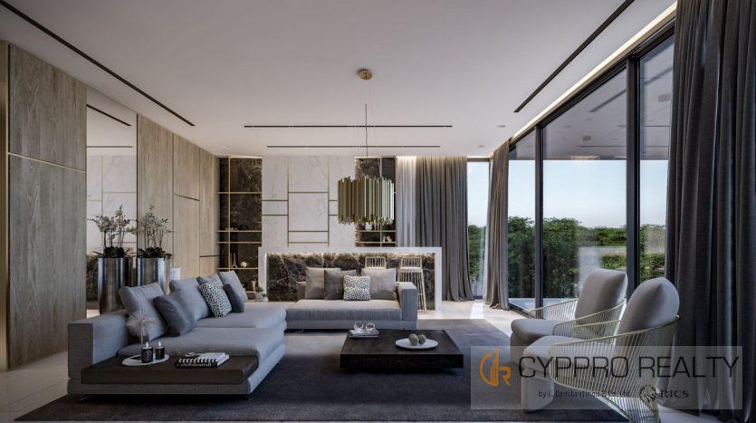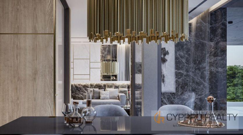 This luxurious villa is situated in one of the most expensive and desirable areas in Limassol. Located in a quiet neighborhood, on the east side of the city on the riverbed of Germasogeia, surrounded by breath-taking landscapes as well as a lot of basic amenities (supermarkets, cafes buses, shops, banks etc.) it is the ideal place for someone who’s looking to live in a peaceful, tranquil and very scenic area that is also very near to major tourist attractions and with easy access to the highway.