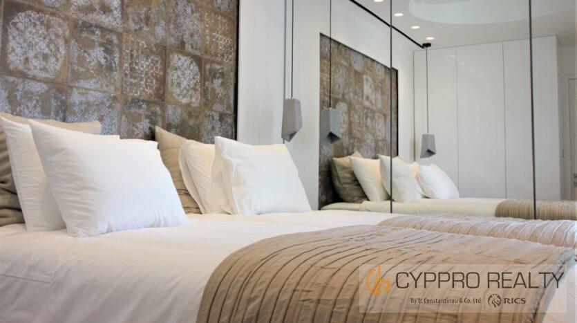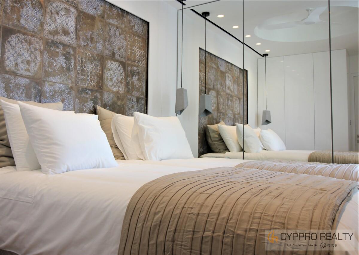 For rent a designer apartment with 2 bedrooms is a dazzling house with a magnificent view of the sea and ideal accommodation for both vacationers and business people. Renovated to the highest standards, it is beautifully decorated and brilliantly located right on the sandy beach next to the Four Seasons Hotel in the upscale tourist area of Agios Tikhon. Fully equipped kitchen, open living area and covered balcony with outdoor furniture. Terms of 2 deposits + 1 rent.