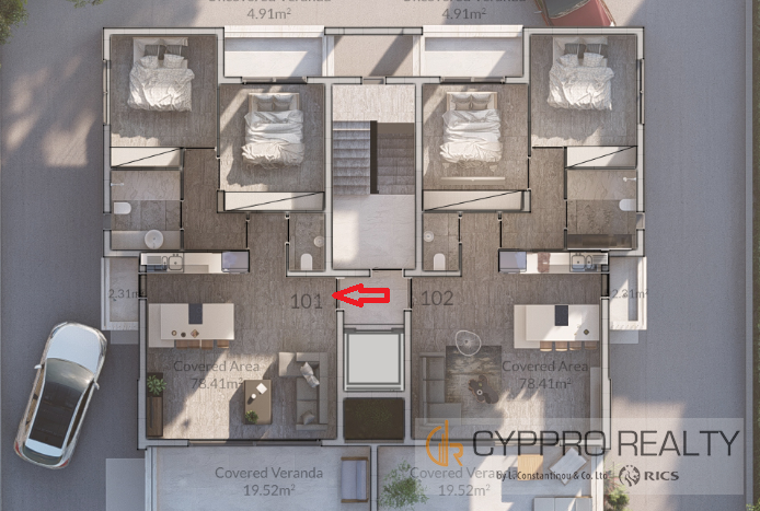 Квартира расположена в районе Экали, в безопасном жилом районе в центре Лимассола, в непосредственной близости от многочисленных удобств и всего в минуте езды от автомагистрали. Трехэтажное здание из шести двухкомнатных квартир. Квартиры сочетают современный дизайн интерьера с теплыми и уютными элементами, а две квартиры на верхнем этаже имеют отдельные частные сады на крыше и бассейны. Большие балконы с безрамными стеклянными перилами подчеркивают ощущение открытости и создают плавную и устойчивую связь с окружающей территорией.