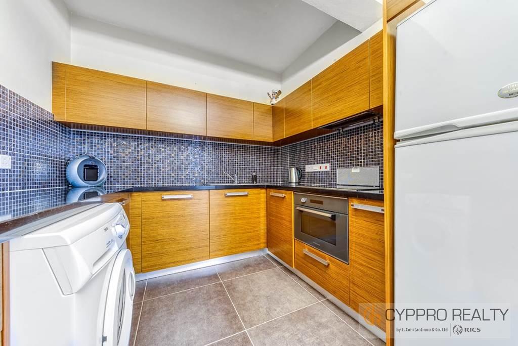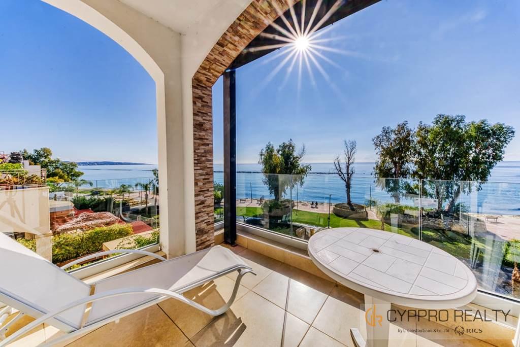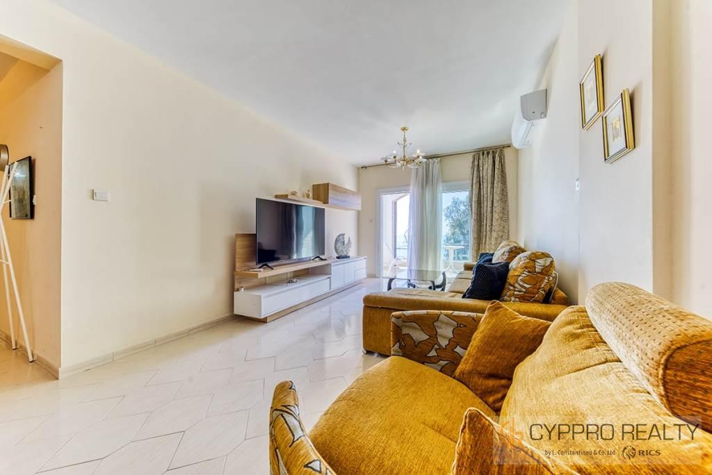 В квартире есть просторная полностью оборудованная кухня открытой планировки, гостиная с верандой с панорамным видом на море, две большие спальни, ванная комната и гостевой туалет.