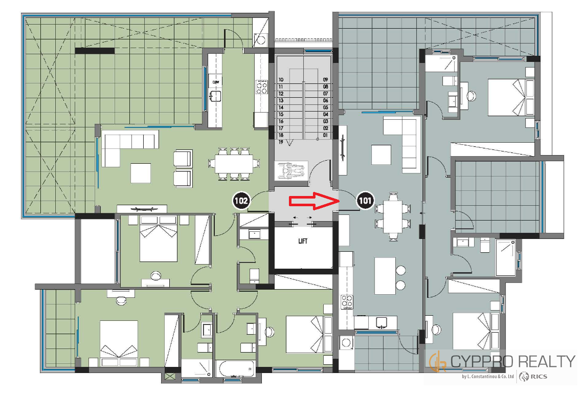 4-Спальний + Студио Пентхаус в районе Колумб...