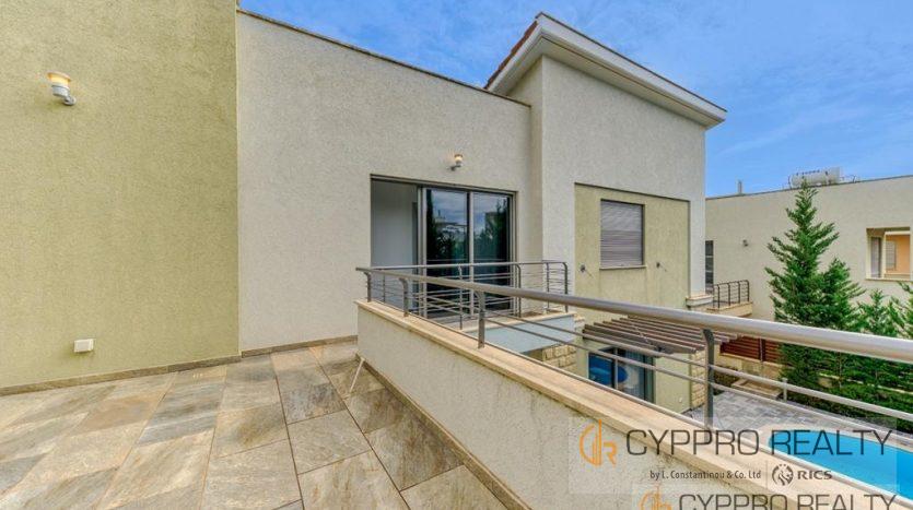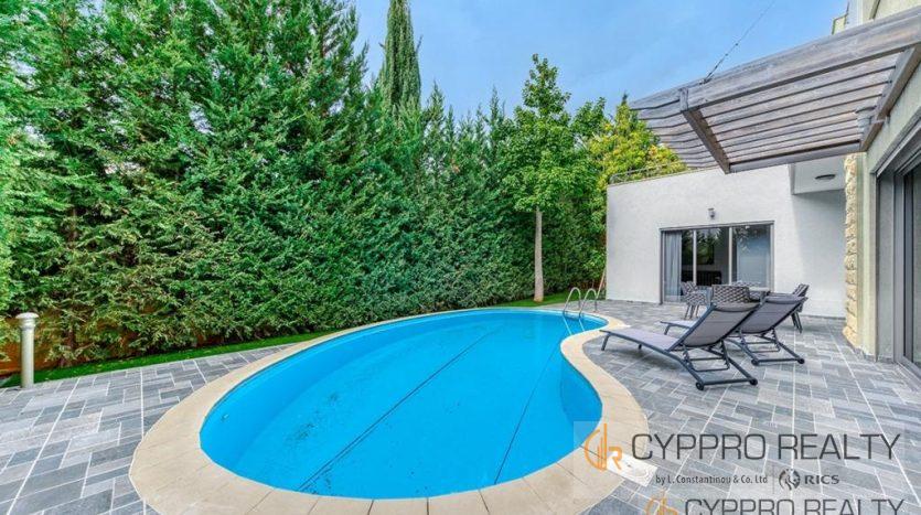 Размер участка около 250 кв.м. На террасе есть бассейн, площадка для барбекю, а также зона для отдыха и загара.