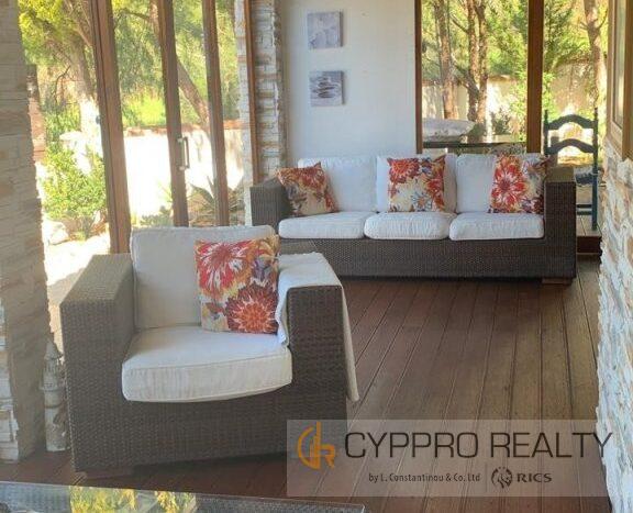 Он имеет 4 спальни, 2 ванные комнаты и один туалет. Он имеет бассейн, сад и площадку для барбекю.