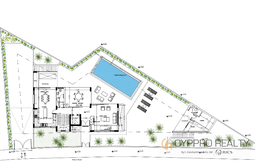 Состоит: 3 уровня, 4+ спальни, 3 ванные комнаты, гостевой туалет, кабинет, крытая парковка, бассейн, сад, сад на крыше. На участке 700 кв.м. и крытая площадь 390 кв.м.