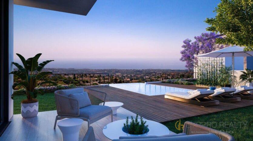 Построенный на просторных участках, этот проект состоит из 2-х и 3-х этажных вилл с 3 спальнями, 3 ванными комнатами и впечатляющим пейзажным бассейном с беспрепятственным видом. Всего в 10 минутах от центра Пафоса, Международной школы, гольф полей Цады, пляжа, и в 2 минутах от центра поселка. Это идеальное место для постоянного проживания.