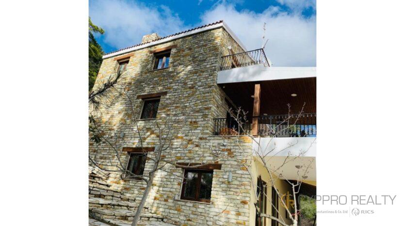 Каменный современный 5 спальный дом расположен в Пера Педи. Дом расположен буквально на холме посреди леса, с фантастическим видом. Расположение дома уникально с панорамным видом на лес. Окрестности — чистая тихая деревня, предоставляющая все виды услуг местным жителям.