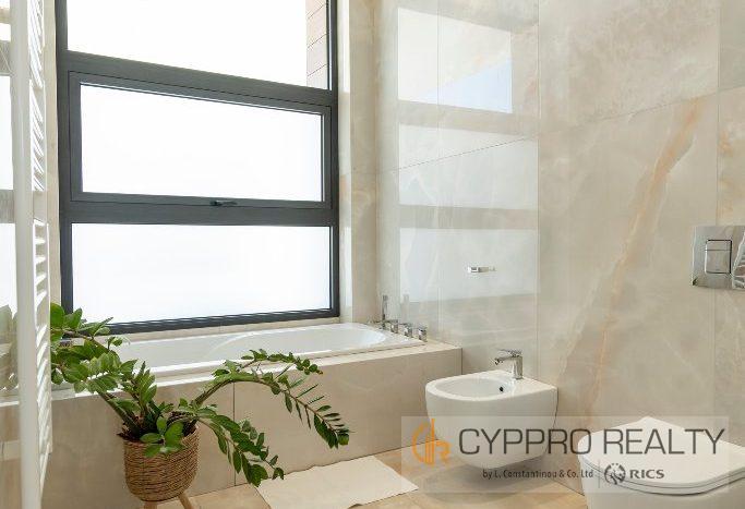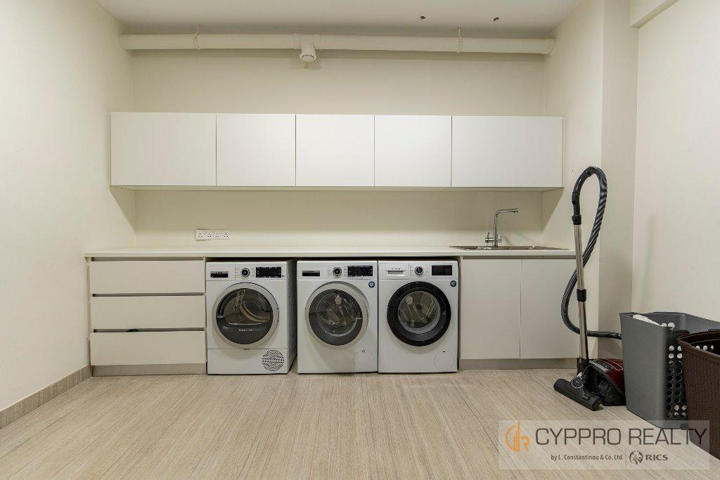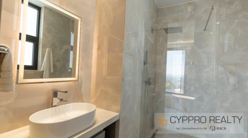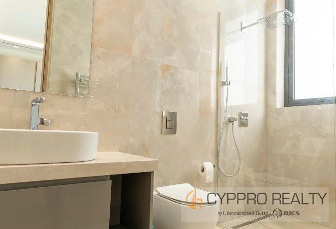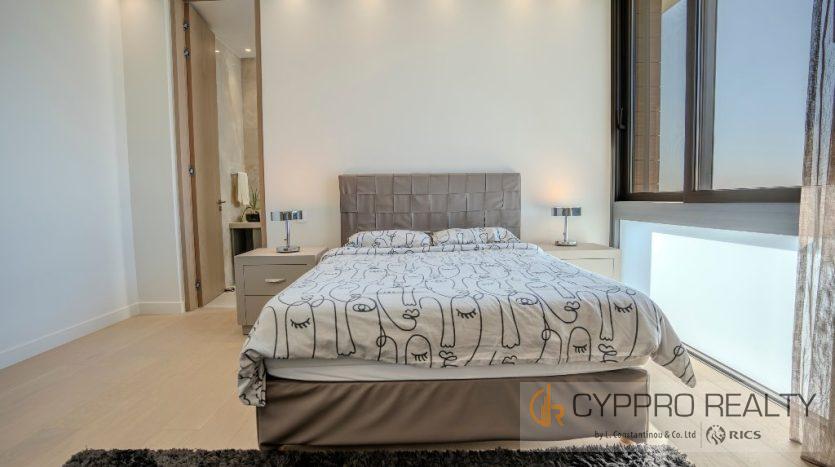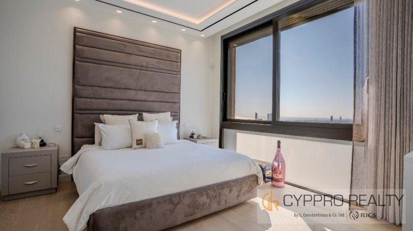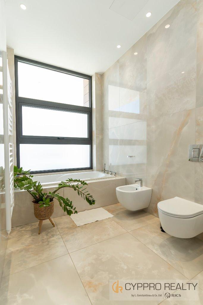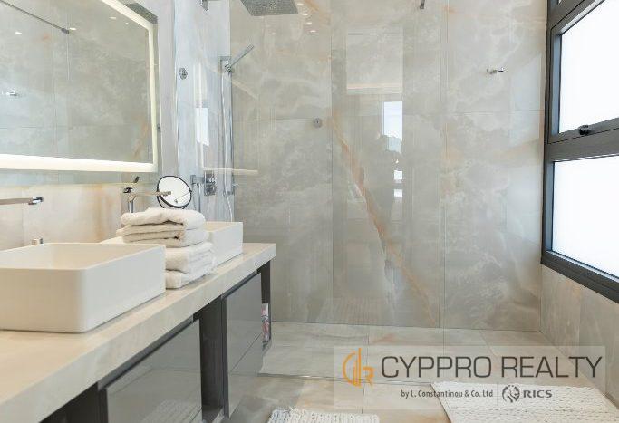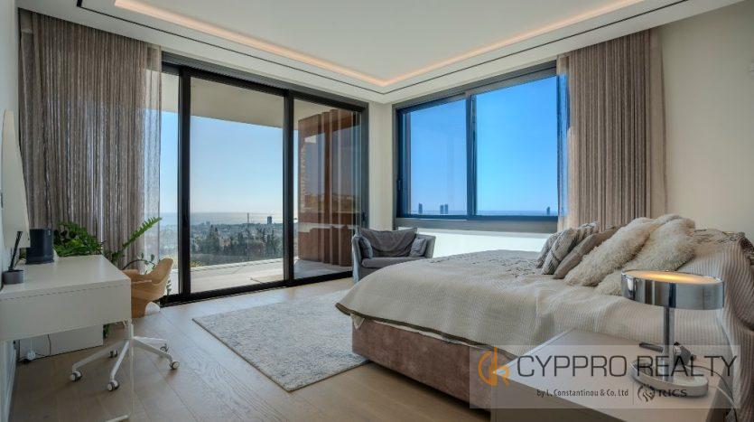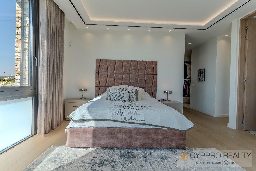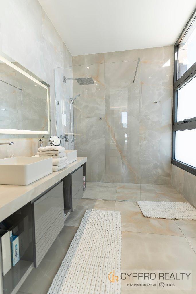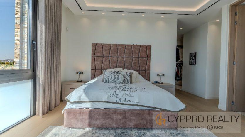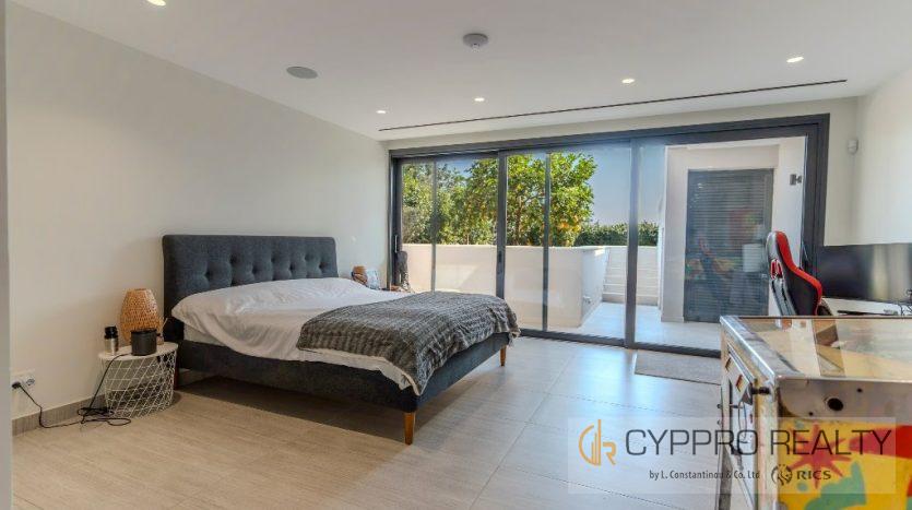 На первом этаже есть стеклянный коридор, ведущий ко всем спальням, роскошная главная спальня с ванной комнатой включает гардеробную и просторную ванную комнату/душевую комнату с видом на сад, бассейн и панорамный вид на Лимассол. На этом этаже есть еще три просторные спальни, все с ванными комнатами и встроенными шкафами.