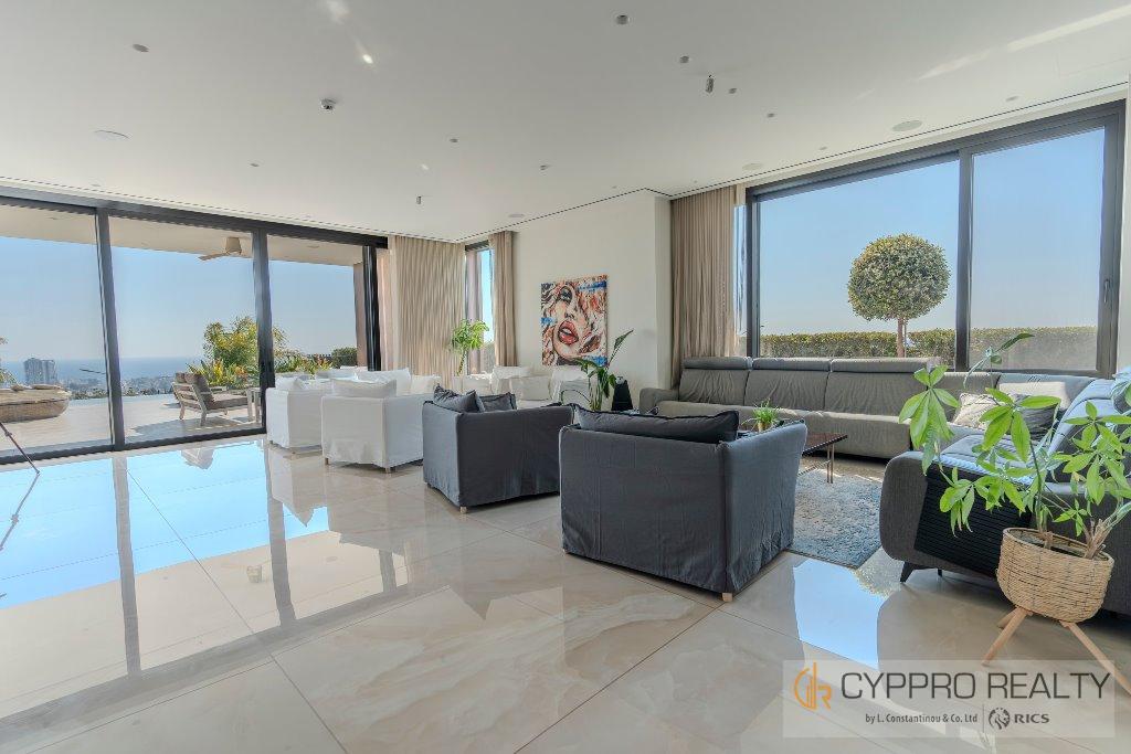 Роскошная современная вилла, недавно построенная с использованием самых высоких стандартов технологий и материалов. Эта очень просторная вилла с 6 спальнями и завораживающим панорамным видом на побережье и город расположена в престижном районе Паниотис, Гермасойя, всего в 8 минутах езды от пляжа и центра города Лимассол.