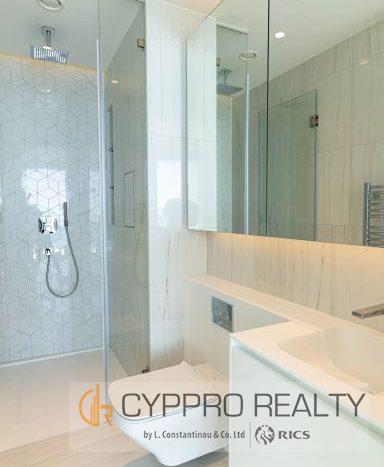 В ванных комнатах есть сделанные на заказ туалетные столики, фурнитура Duravit, а также смесители и смесители Hansgrohe.