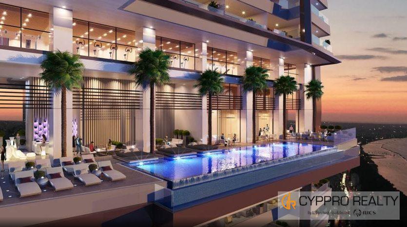 Комплекс был спроектирован для размещения эксклюзивных резиденций и впечатляющего пейзажного бассейна и ресторана на 10-м этаже с панорамным видом на Средиземное море.