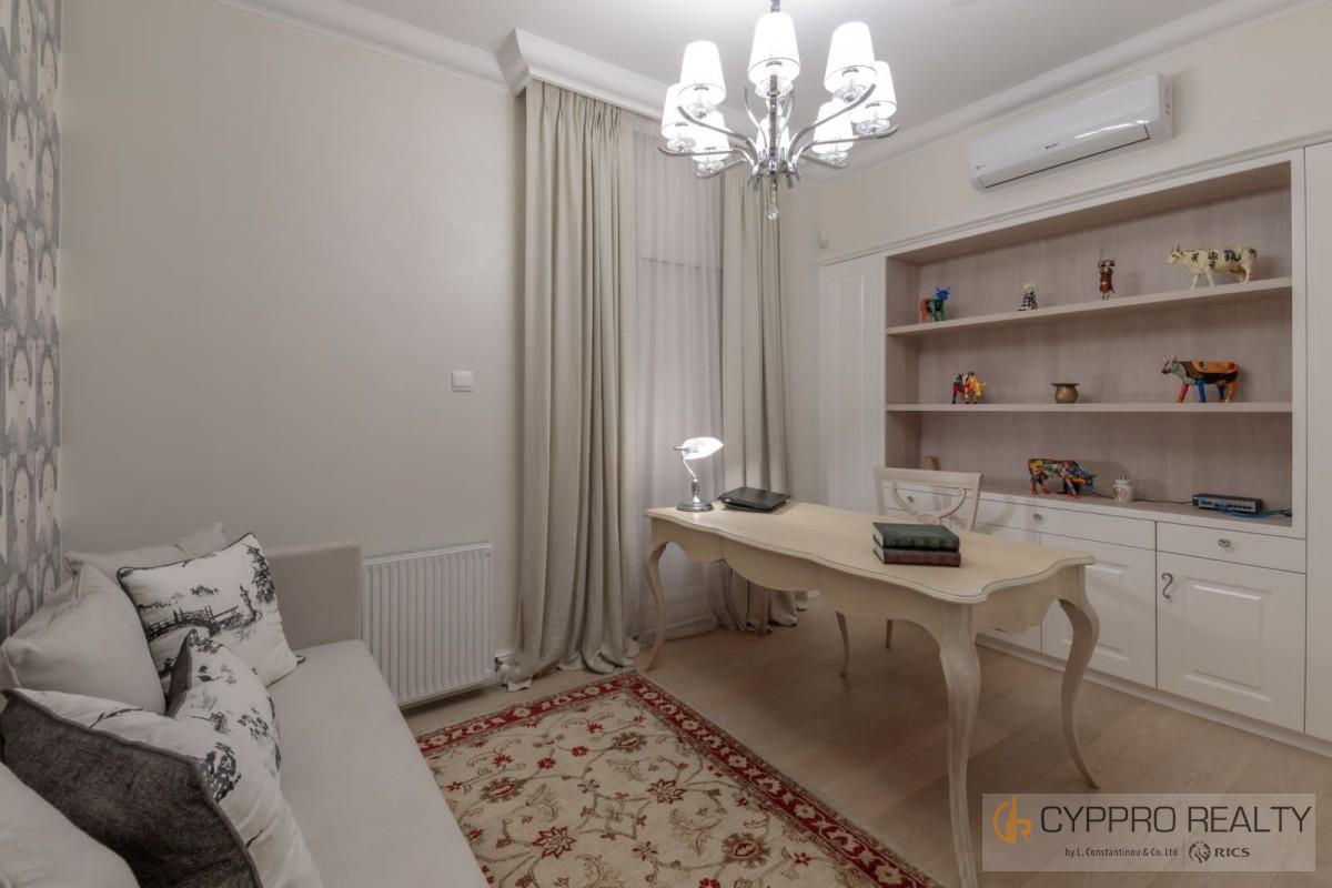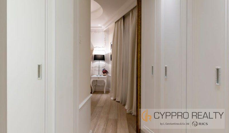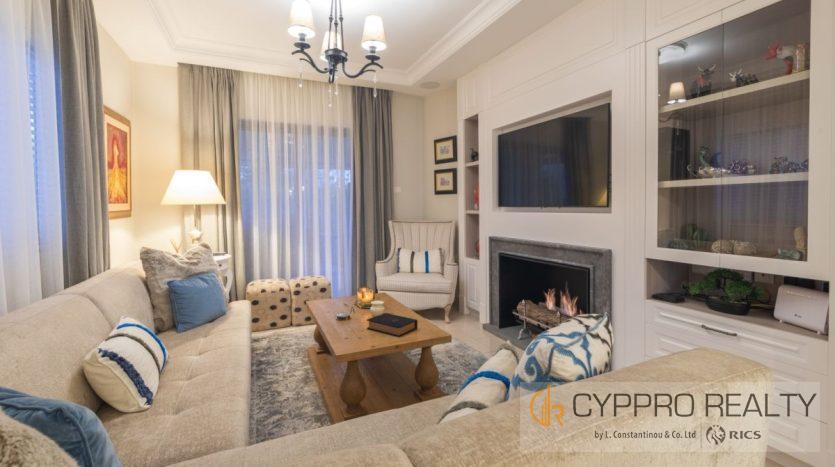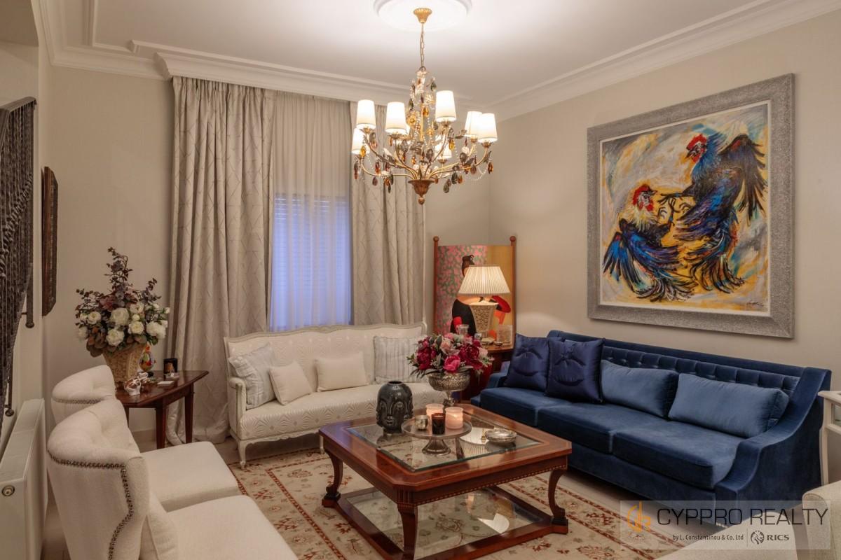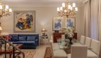 Гостиная-столовая полностью обставлена высококачественной мебелью на заказ, коврами ручной работы и освещением, телевизором и аудиосистемой. Стиральная машина и сушилка в соседней прачечной.
