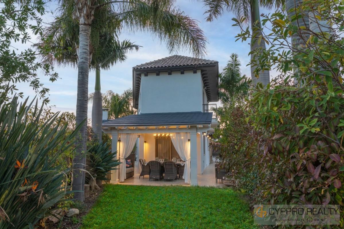 - Красивый сад с высокими пальмами и средиземноморскими растениями и цветами.