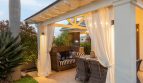 - Веранда с деревянной беседкой и садовой мебелью с видом на сад, рядом с изготовленным на заказ моторизованным барбекю с раковиной и местом для хранения вещей