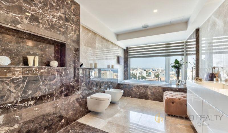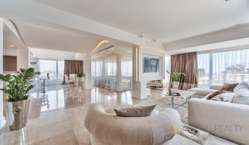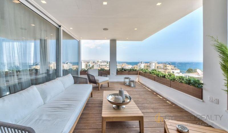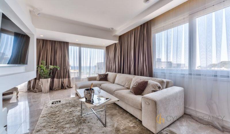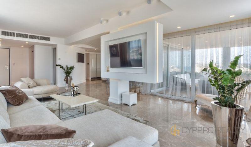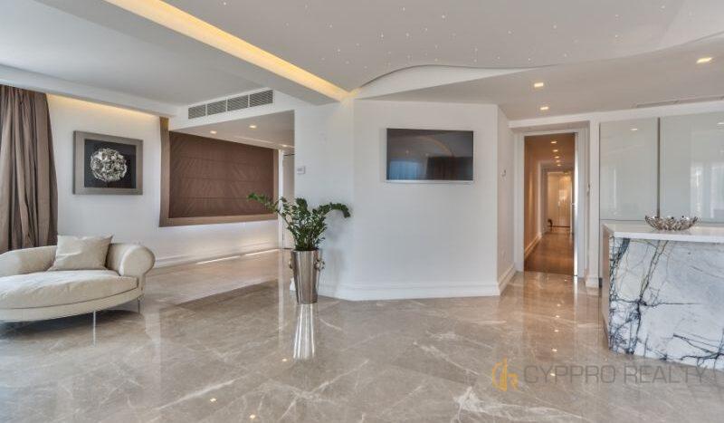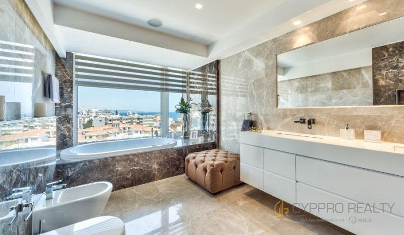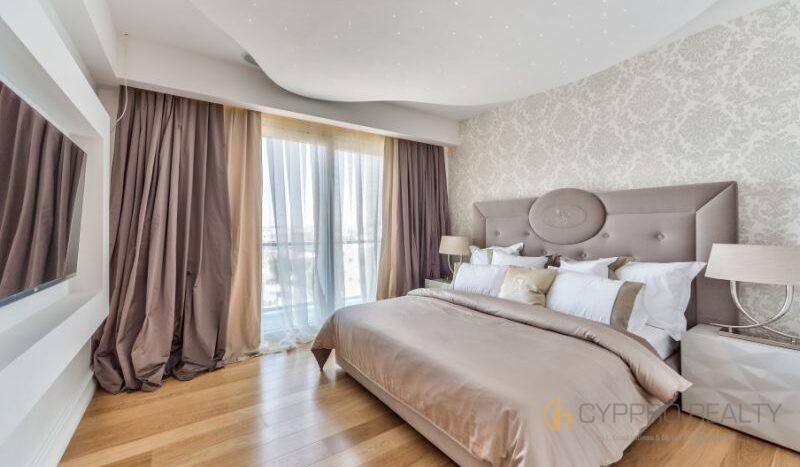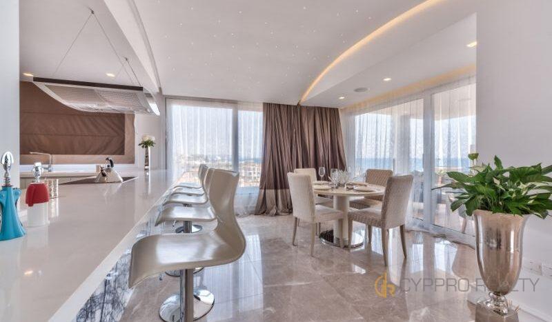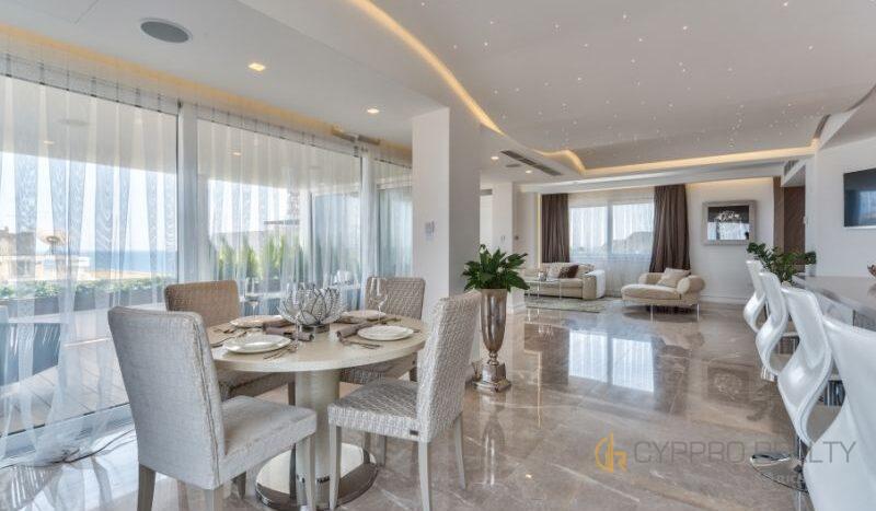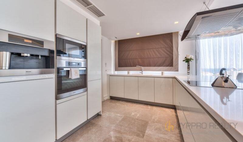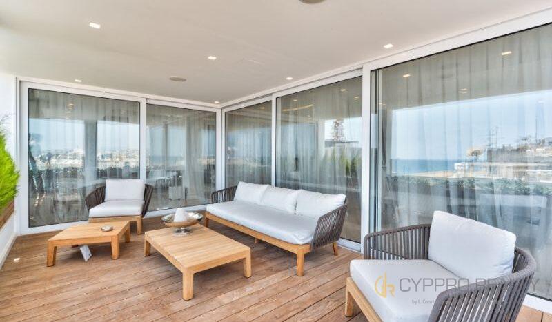 Роскошный 4-х спальный пентхаус расположен в береговом закрытом комплексе, в сердце туристического района Лимассола. Из окон пентхауса и его просторной террасы открываются захватывающие горные и морские панорамы. В распоряжении резидентов комплекса просторная крышная терраса, оборудованная лежаками, перголой и жаровней для барбекю. Изысканный интерьер подчеркнут брендовой мебелью, стильными аксессуарами и первоклассной немецкой бытовой техникой. Пентхаус снабжен теплыми полами и дорогим паркетом. Установлена система «умный дом». Помимо этого в пентхаусе имеются: центральная система кондиционирования DAIKIN, сейфовая входная дверь, спутниковое телевидение, пластиковые окнами KOMMERLING с двойным остеклением, немецкая кухня ALNO, итальянские двери и шкафы SANTAROSSA, сантехника GROHE, мраморный пол в гостиной и в ванных комнатах.