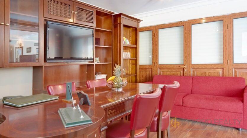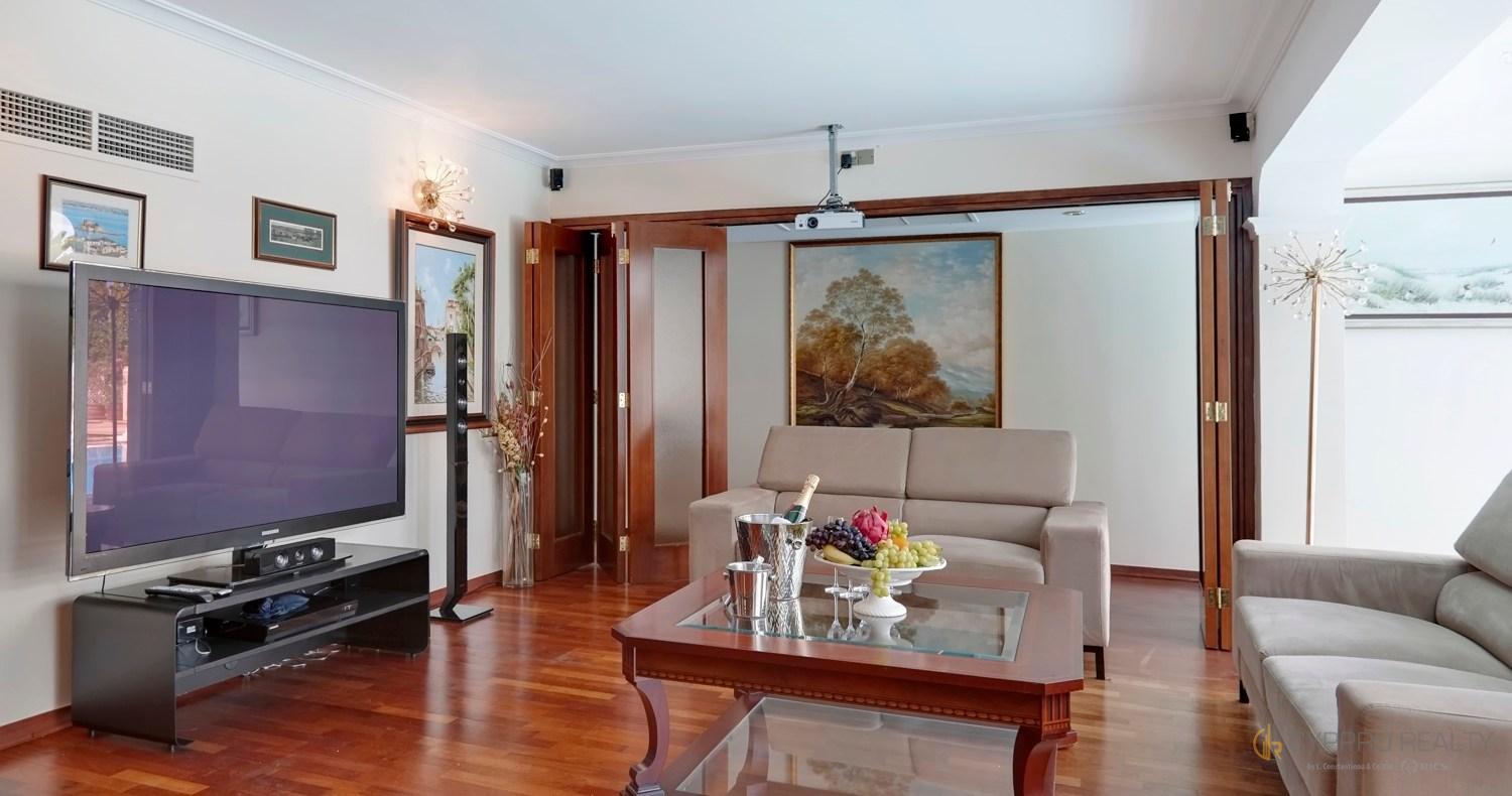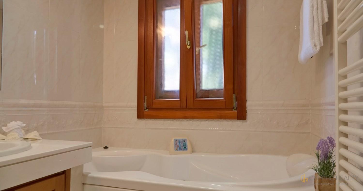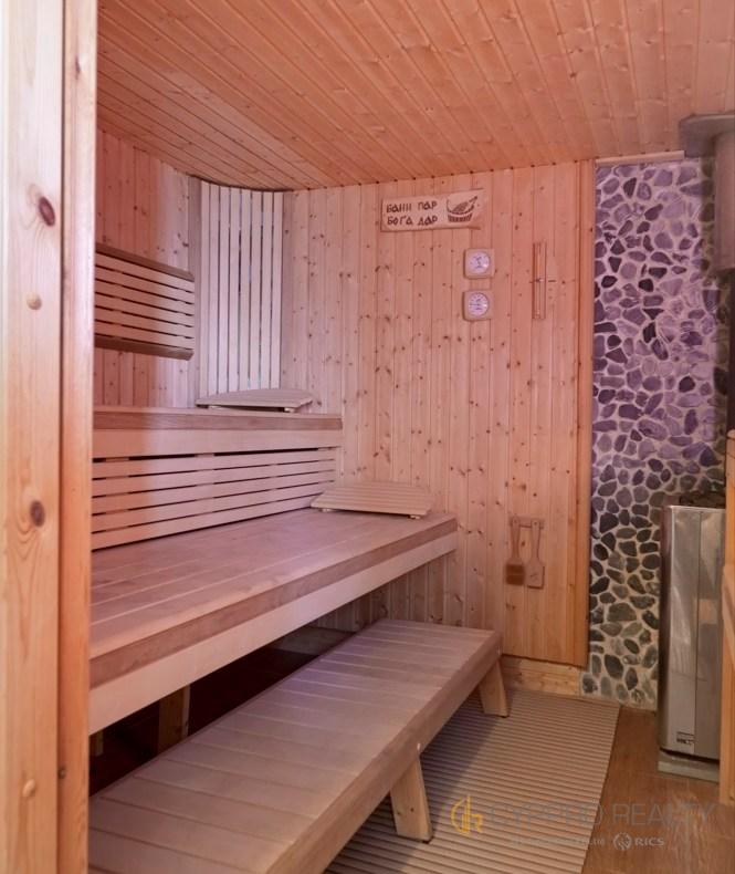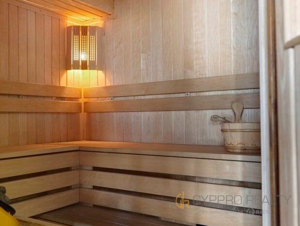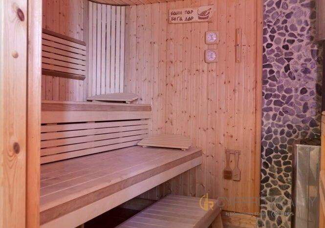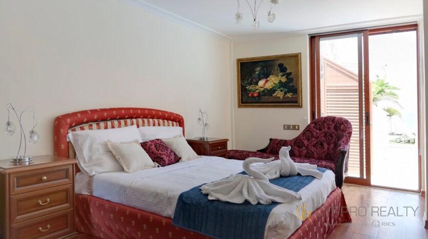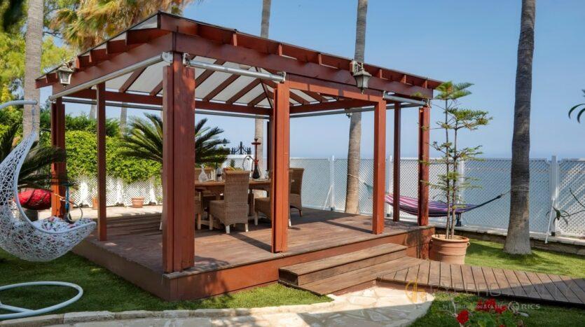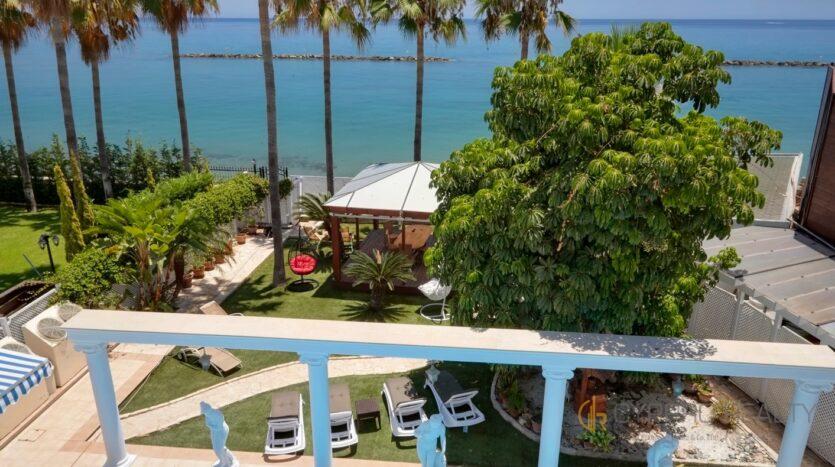 3-х уровневая вилла с 6 спальнями с прямым выходом на пляж через одну из двух ворот из сада и в пределах 10-15 метров от моря. Вилла предназначена для проживания, поскольку состоит из двух этажей, которые можно использовать отдельно друг от друга, так как на каждом из них есть кухня, гостиная и спальни, что идеально подходит для больших семей. Также есть сауна, расположенная в отдельном здании у пляжа, которое топится дровами, может вместить до 10 человек, и в этом здании есть собственная гостиная, туалет и душевые.