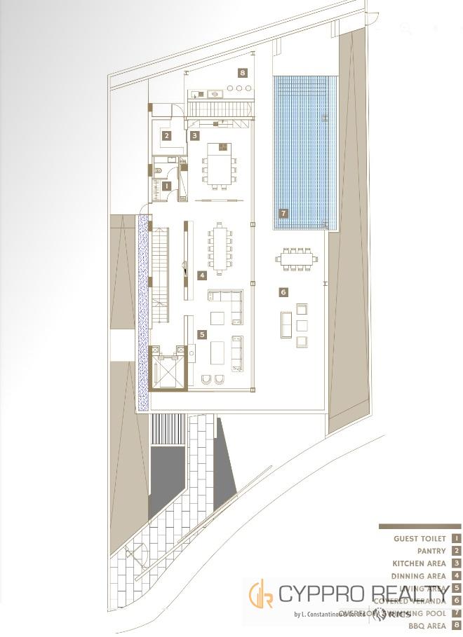 - Оазис на открытом воздухе: вилла имеет тщательно ландшафтные сады, создавая частный оазис, где жители могут отдохнуть и отдохнуть. Кроме того, просторная терраса и бассейн являются идеальным местом для развлечений на свежем воздухе и для наслаждения солнечным климатом Кипра.