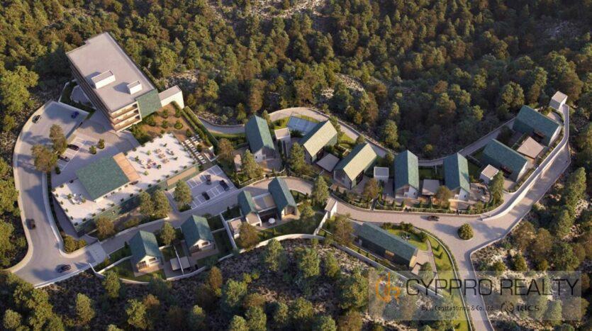 Курорт находится на высоте 1,065 метров над уровнем моря в живописной спокойной деревне Платрес и окружен нежно волнистыми тропами через пышный зеленый лес и рядом с восхитительными ручьями и водопадами, что делает этот район раем для любителей природы.