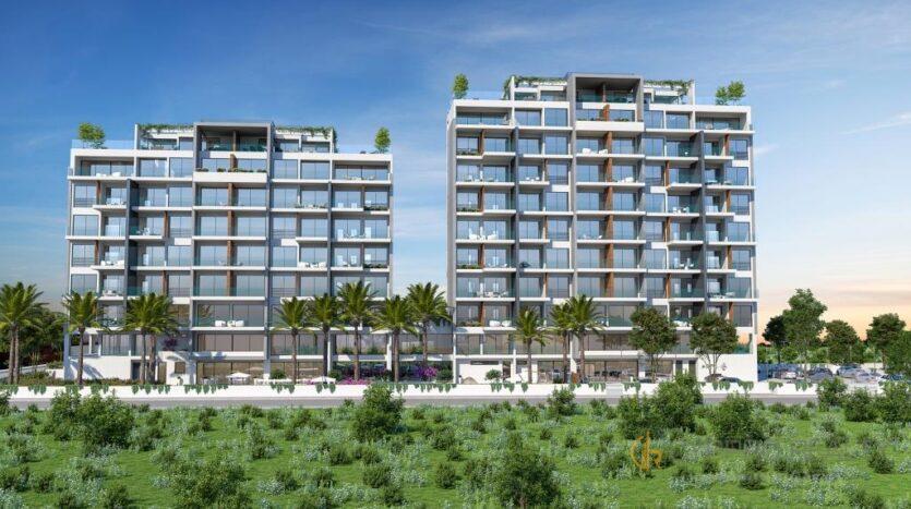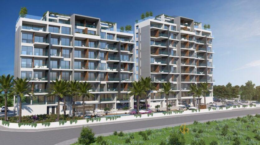 Этот стильный и современный комплекс состоит из двух башен 6 и 8 этажей, впечатляющего архитектурного дизайна, из которых открывается беспрепятственными панорамный вид, всего в 5-10 минутах ходьбы от песчаных пляжей, супермаркетов, магазинов, ресторанов, кафе, банков и многих других удобств инфраструктуры города.
