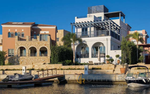 Вилла с приватным бассейном и причалом расположена в Лимассол Марина.